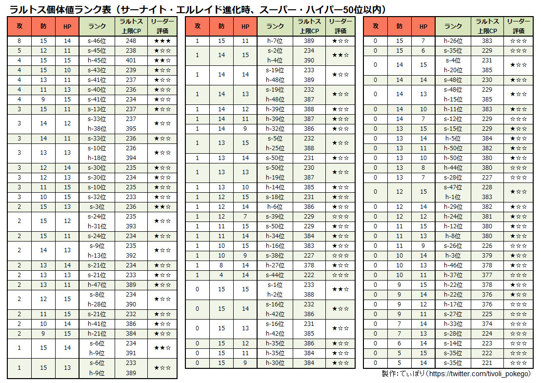 GB版ポケモン裏技まとめサイト ポケモン赤緑青ピカチュウ ミュウ └ ショップ釣りバグ 壁抜け └ 応用 超壁抜け・いつでも自転車 ライバル家ワープ(どこかしらドア) └ 最速クリア | デパートワープ | イベントを極力起こさず移動する方法個体値厳選ツールGOバトルリーグの使い方 (1) 「ポケモン」を入力します。 (2) 「個体値(リーダー評価)」を選択してください。 数字をタップすると連動してバーが動きます。 (3) CPを入力すると、強化や進化に必要な「ほしのすな」と「アメ」の数ポケモン 初代 個体値オーメン 666 1976 25 juillet ;